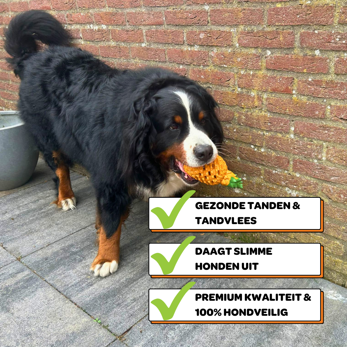 ⚠️ Vindt jouw hond vooral de puntjes van de ananas onweerstaanbaar? Na flink kauwen kunnen er soms stukjes afbreken. Geen zorgen: dat is helemaal niet schadelijk - je hond kan er gewoon veilig mee doorspelen.