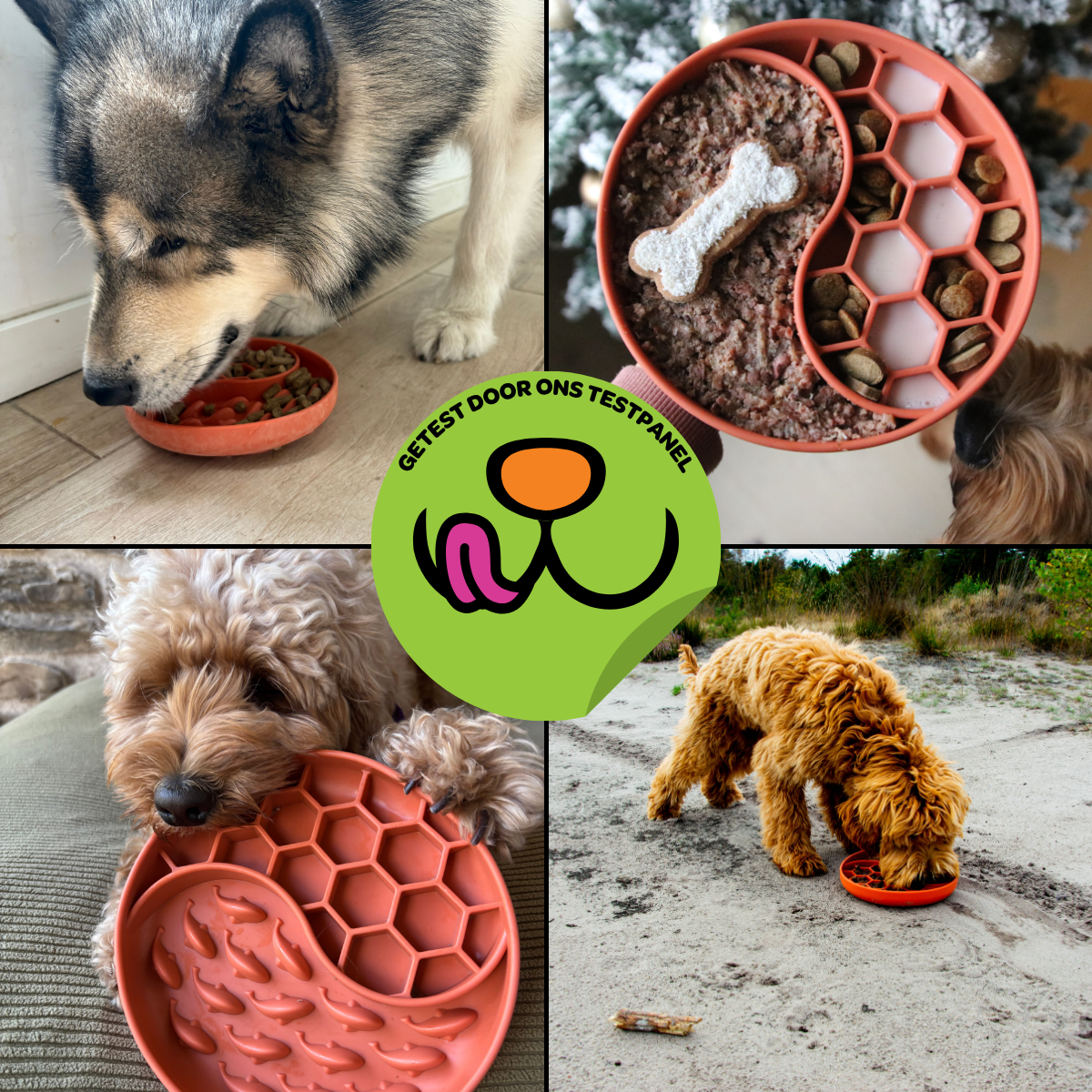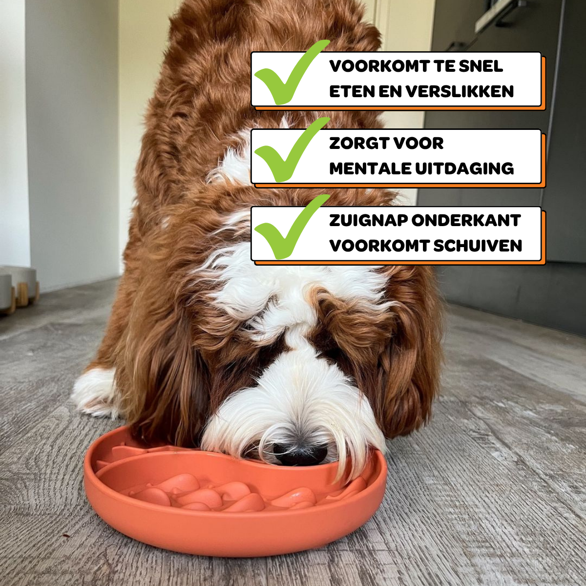 De sterke zuignap aan de onderkant houdt de bak stevig op zijn plek, zodat er geen geknoei of geschuif ontstaat. Geschikt voor zowel droog als nat voer én vaatwasserbestendig voor ultiem gemak. Door de puzzelachtige indeling wordt je hond mentaal en fysiek gestimuleerd tijdens het eten: een maaltijd wordt zo een leuk spel!