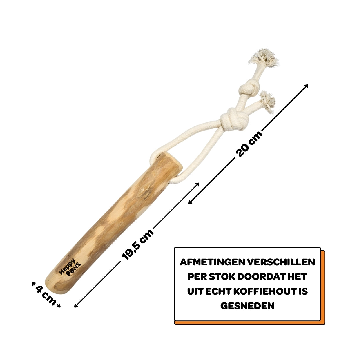 De Koffiehouten Kauwstok L met Touw is de ultieme keuze voor grote honden (L) met een sterke beet die houden van langdurig én afwisselend speelplezier. Gemaakt van massief, 100% natuurlijk koffiehout en voorzien van een stevig touw van 20 cm voor extra grip en interactie. Volledig geurloos, veilig en duurzaam. ☕️