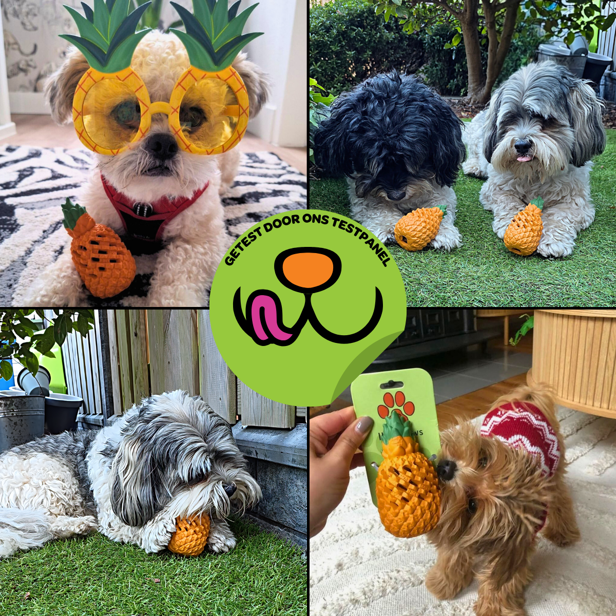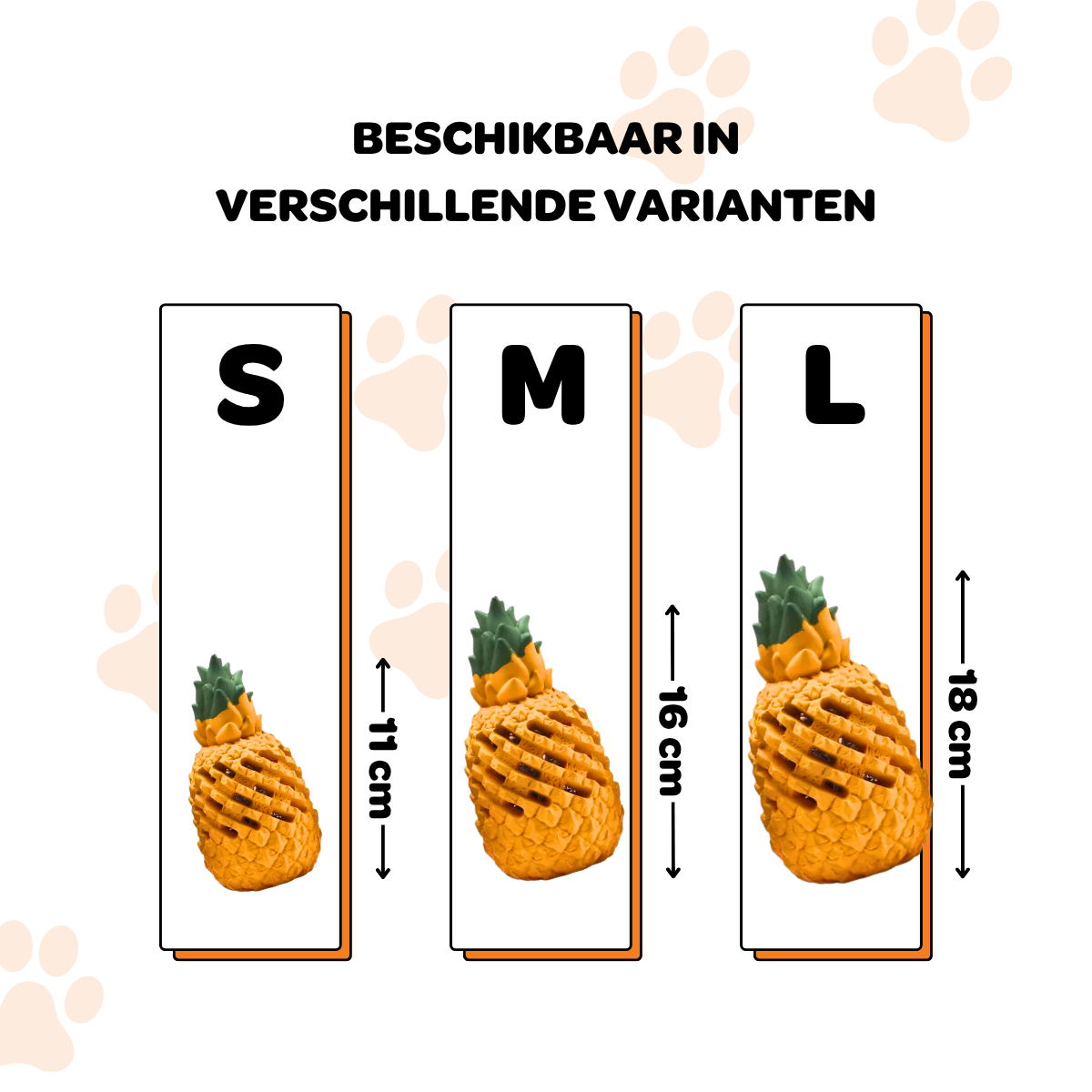 ⚠️ Vindt jouw hond vooral de puntjes van de ananas onweerstaanbaar? Na flink kauwen kunnen er soms stukjes afbreken. Geen zorgen: dat is helemaal niet schadelijk - je hond kan er gewoon veilig mee doorspelen.