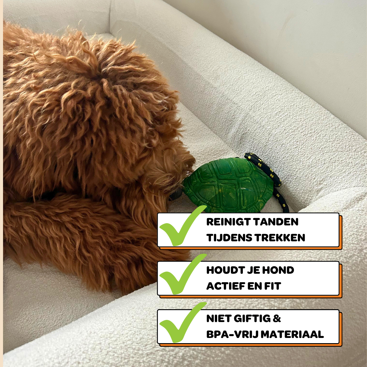 Dit is Franklin - hij is dan wel iets langzamer dan zijn broer Michelangelo - maar hij is nog steeds interactief hondenspeelgoed dat speciaal is ontworpen voor middelgrote honden (M). 🐶 Dankzij het supersterke ontwerp en het oersterke touw van 45 cm is dit speeltje ideaal voor trekspelletjes, apporteren én stevig kauwwerk.